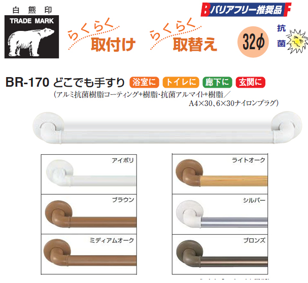 シロクマ どこでも手すり BR-170 600mm