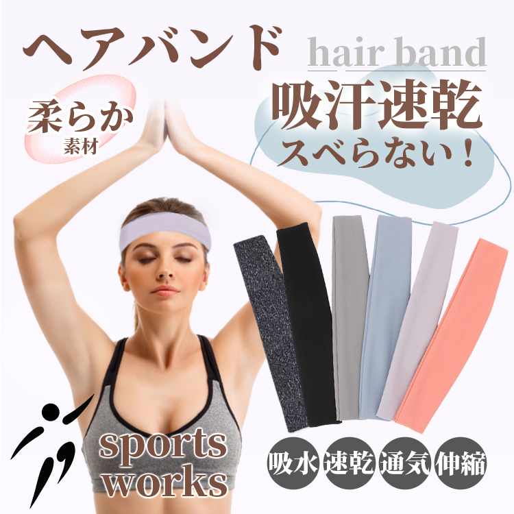 ヘアバンド スポーツ レディース ヨガ 汗止め ヘッドバンド 滑り止め付 レディース スリム インナーバンド 洗顔フィットネス 吸汗 速乾 滑り止め 全6色