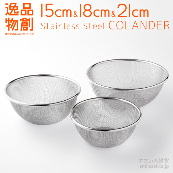 | 丈夫で洗いやすい燕三条製ステンレスザル 逸品物創 ステンレスザル 15cm,18cm,21cm 3点セット |