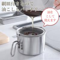 金属加工で有名な新潟県【燕三条エリア】で製造された、丈夫で耐食性に優れたステンレス製のオイルポットです! | | SPEC | | 材質(耐熱温度) | 本体:ステンレス鋼・66ナイロン 網皿・蓋:ステンレス鋼 (耐熱温度:180℃) | | サイズ(約) | 本体:内径 12.5cm 深さ 9.5cm 全長 19cm 全幅 14.5cm 網皿:全高 10cm 底の厚さ 0.4mm