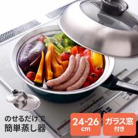 | いつものフライパンやお鍋で本格蒸し料理が作れる! のせるだけで簡単蒸し器24〜26cm 窓付き |