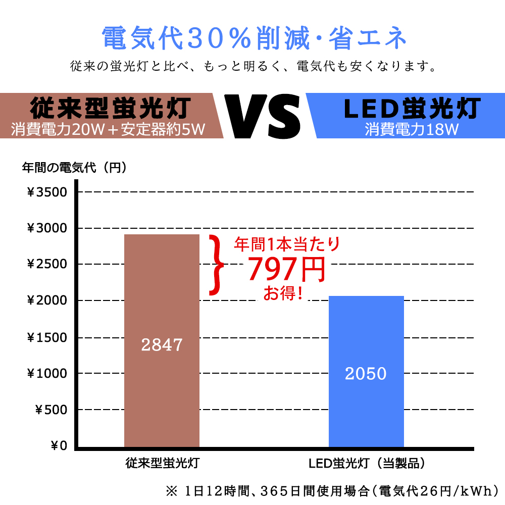 ※同じ器具で従来の蛍光灯とLED蛍光灯は併用できません。