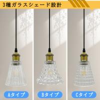 吊り下げ照明 ペンダントライト ガラス 北欧 レトロ風 アンティーク E26 透明感 おしゃれ インテリア照明 天井照明 雰囲気照明 ストライプ 本体のみ