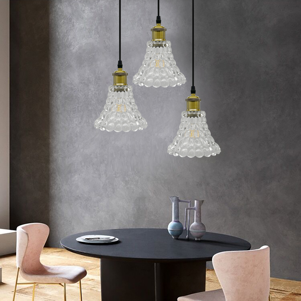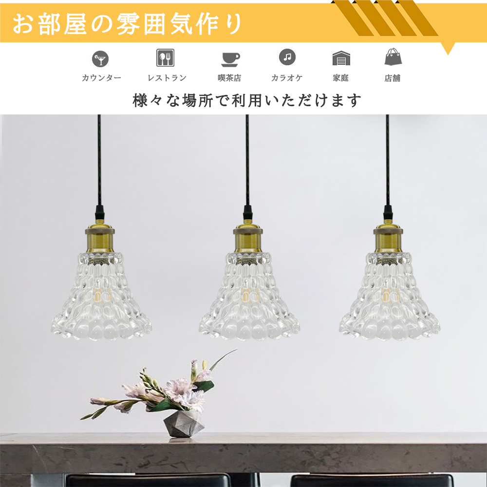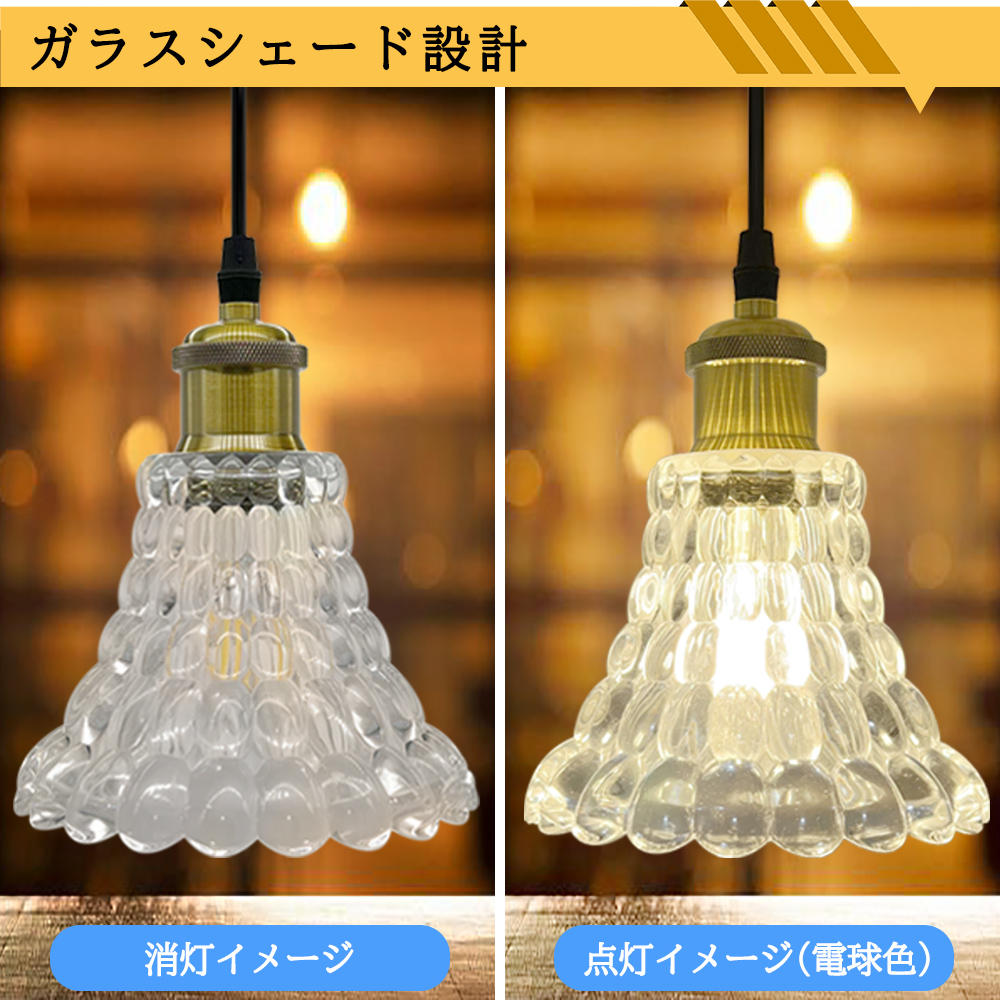 吊り下げ照明 ペンダントライト ガラス おしゃれ 北欧 レトロ風 E26 ダイニング照明 透明感 インテリア照明 天井照明 雰囲気照明 ダイニング照明 花 LED電球付き