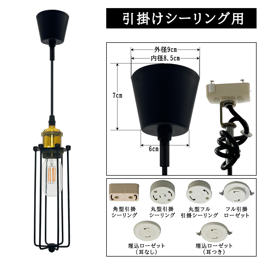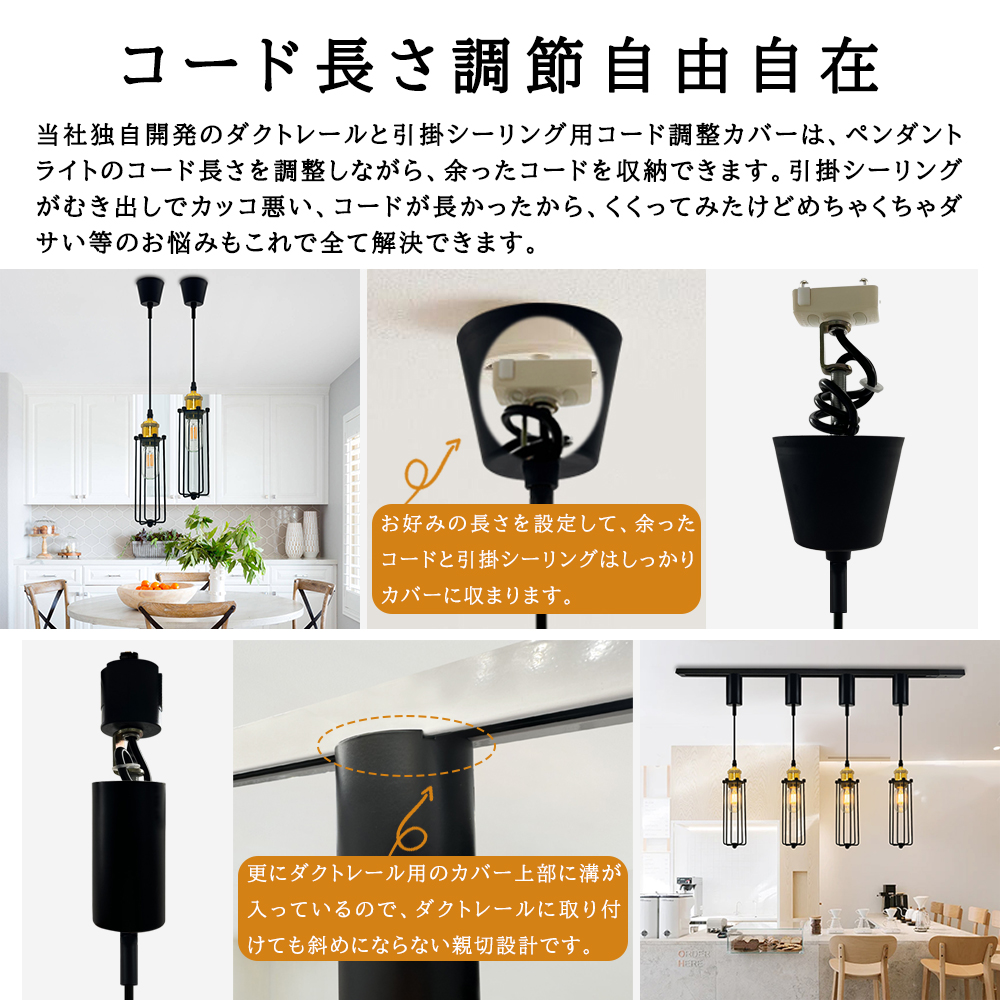 ● コード調節カバーサイズ:内径4.9cm×高さ9.8cm(配線ダクトレール用)/ 内径8.5cm×高さ7cm(引掛けシーリング用)