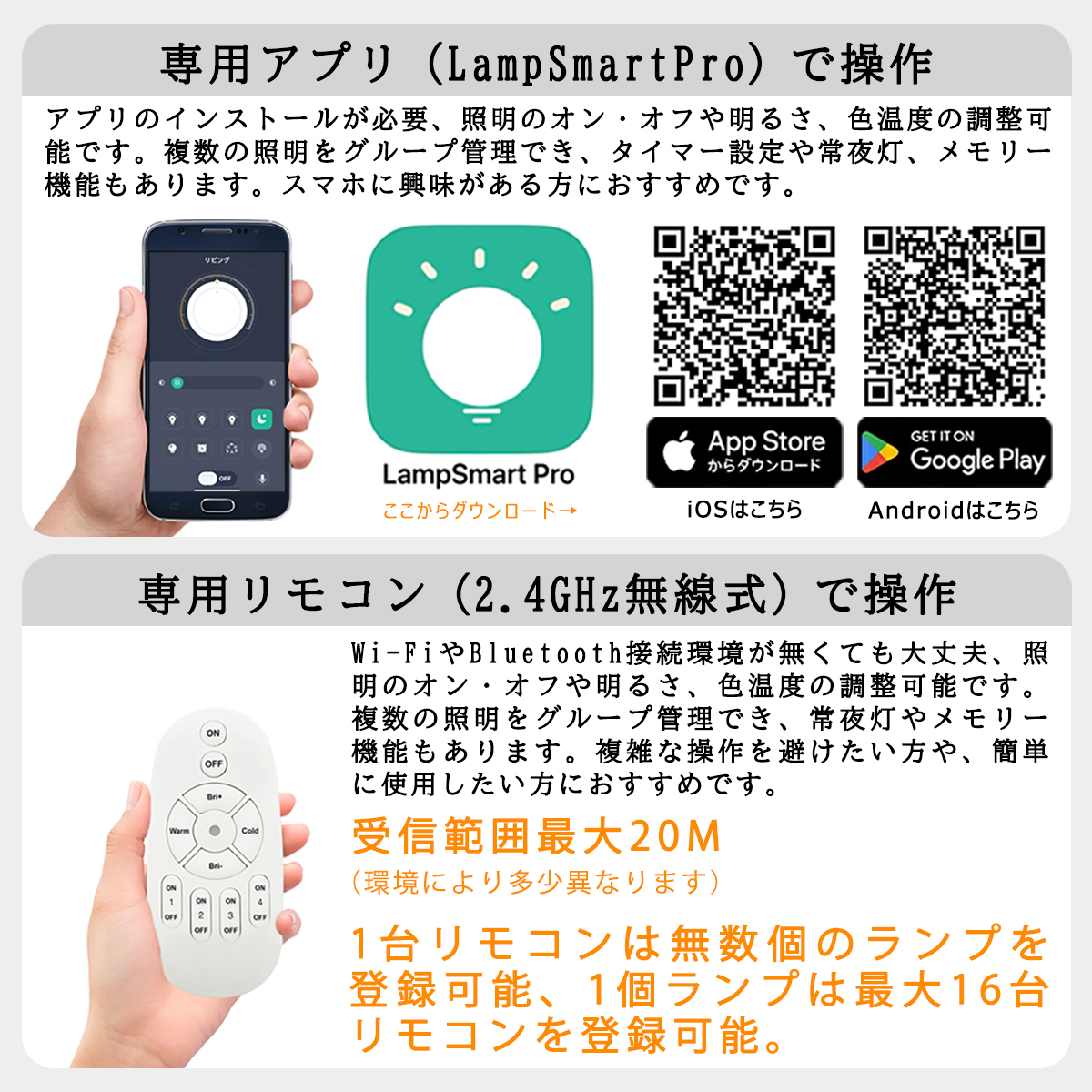 【LED一体型調光調色スポットライト仕様(アプリとリモコン対応)】