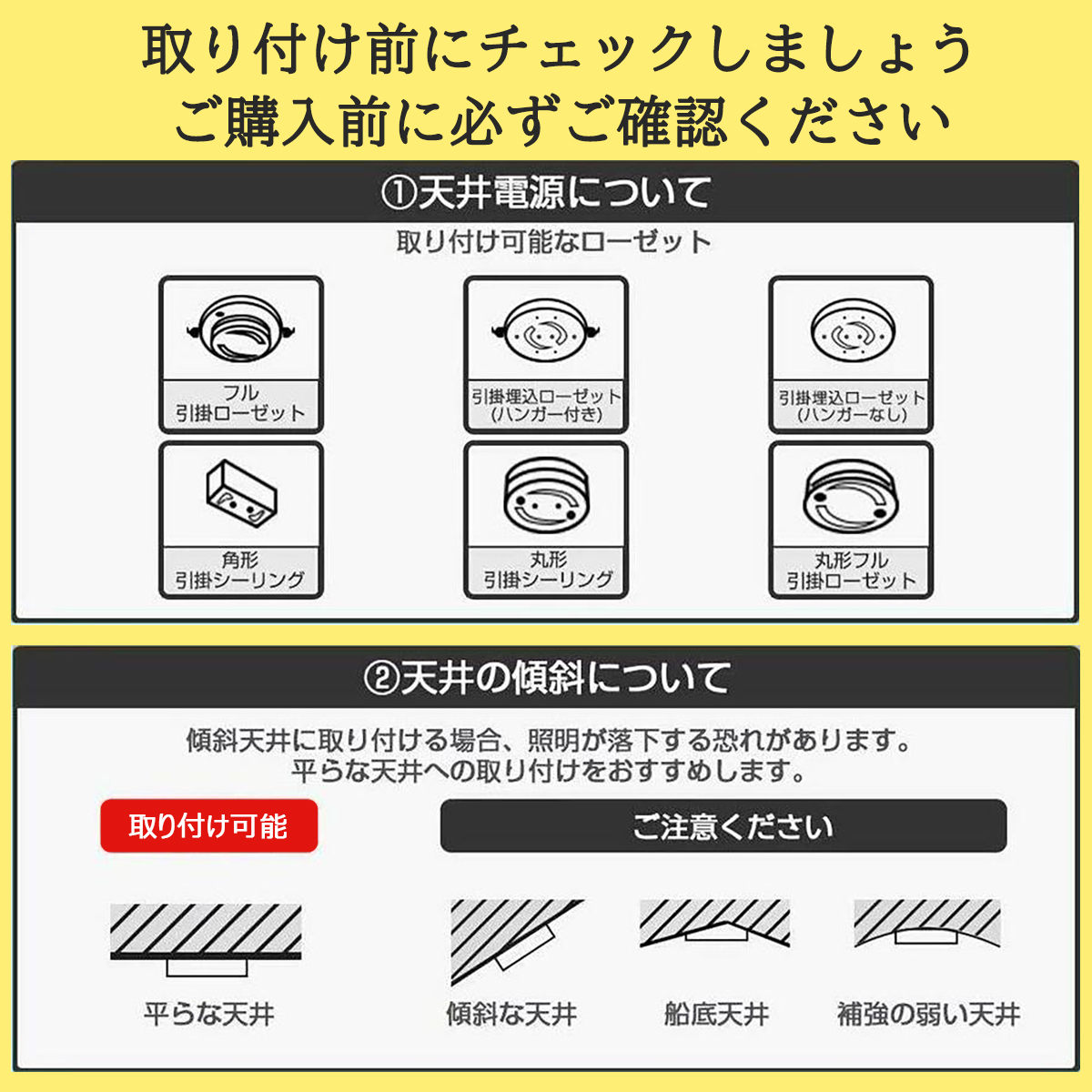 ● 傾斜のある天井、傾斜を合わせた舟底天井、凹凸のある天井ではご使用いただけません。必ず平らな天井に取り付けてください。