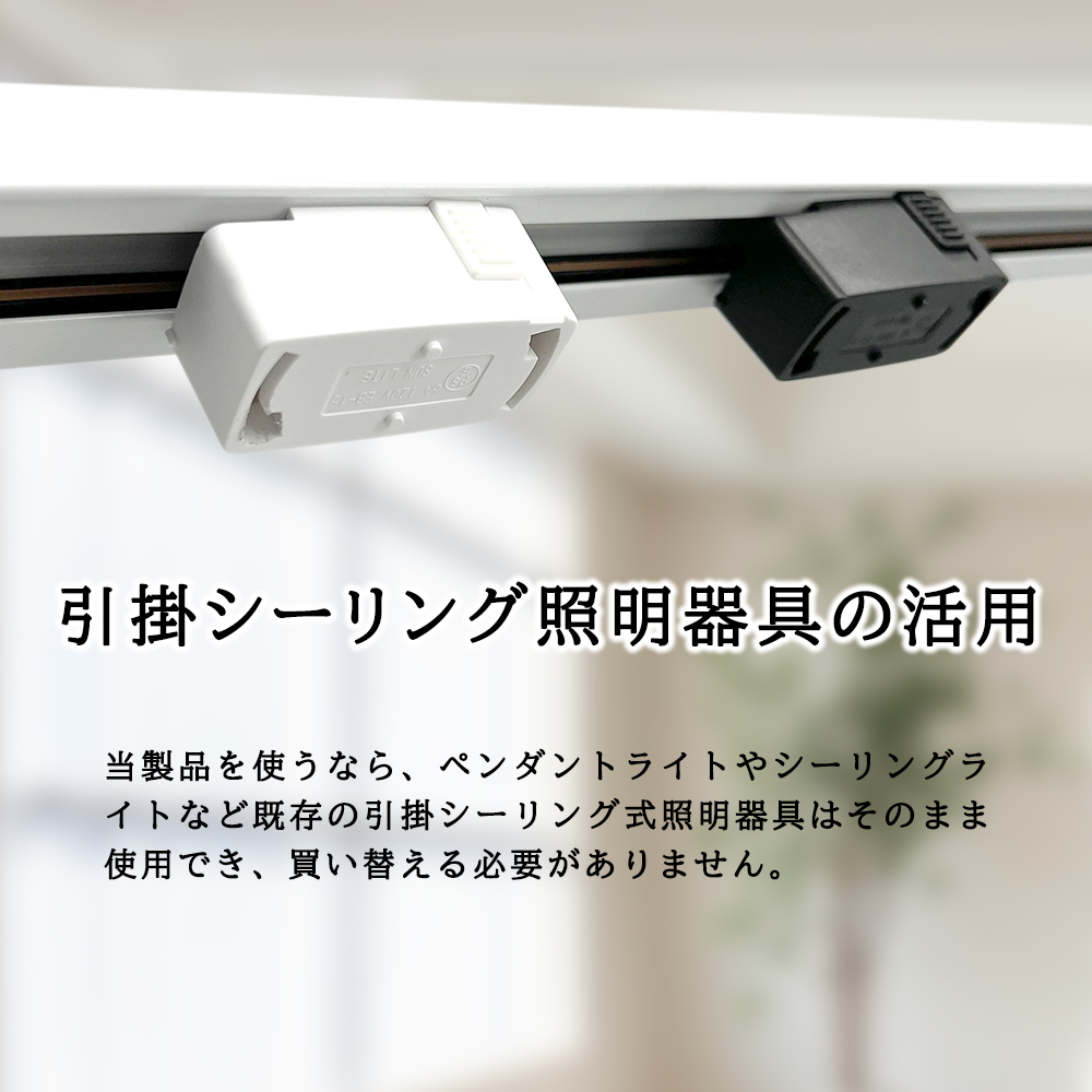 ● ダクトレール用引掛シーリング式変換プラグは、ペンダントライトやシーリングライトなど既存の引掛シーリング式照明器具はそのまま使用でき、買い替える必要がありません。