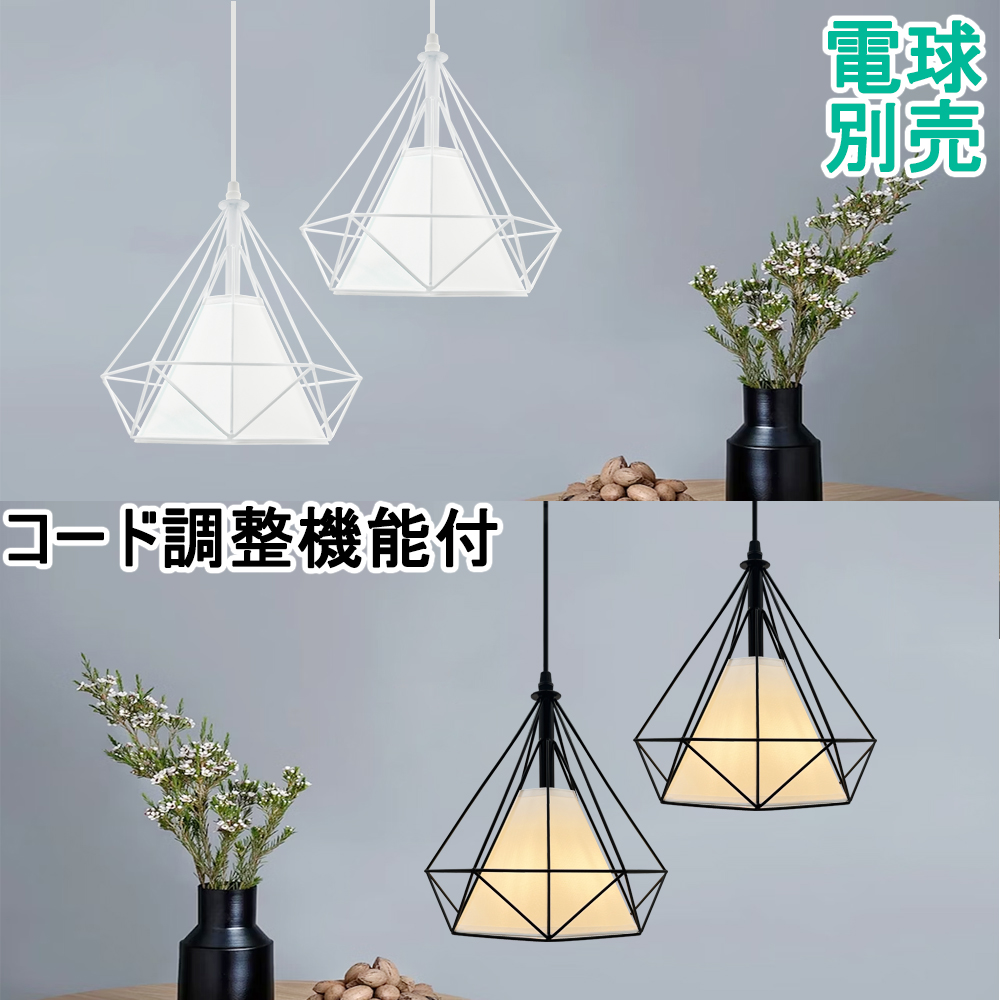 吊り下げ照明 ペンダントライト ダイヤモンド形設計 おしゃれ 北欧 天井照明 シーリングライト 吊り下げライト 黒白2色 コード自由調節 LED電球別売