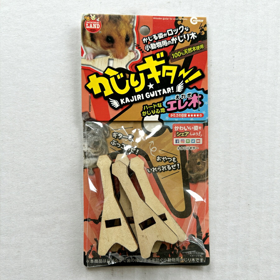 手に持ってかじる様子がギターを弾くように見えて可愛い、小動物専用のかじり木です。