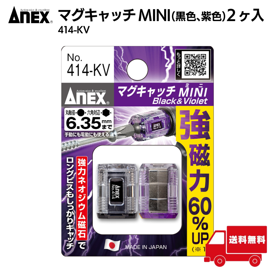 アネックス ANEX マグキャッチ MINI 2個組 黒 紫 マグネット 414-KV DIY ビット ドライバー 磁石