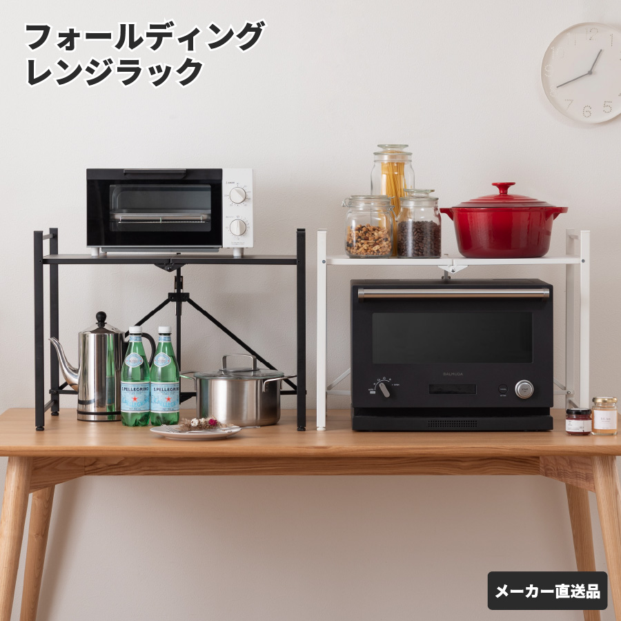 ●折りたたみ可能で、使わない時は省スペースに収納可能なレンジラック。