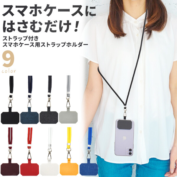 【カラフル9色♪ ストラップ付き スマホケース用ストラップホルダー】スマホケースに挟むだけ!