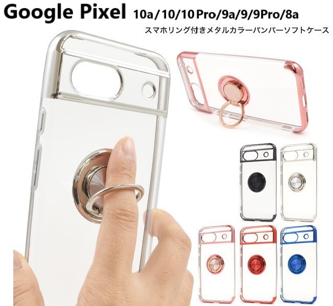 【 Google Pixel 10a / Google Pixel 10 / Google Pixel 10 Pro / Google Pixel 9a / Google Pixel 8a / Google Pixel 9 / Google Pixel 9 Pro 用 スマホリング付き メタルカラーバンパー ソフト クリアケース 】落下防止用のスマホリングが付いた、 Google Pixel 10a / Google Pixel 10 / Google Pixel 10 Pro / Google Pixel 9a / Google Pixel 8a / Google Pixel 9 / Google Pixel 9 Pro 専用のメタルカラーバンパーソフトクリアケースです。