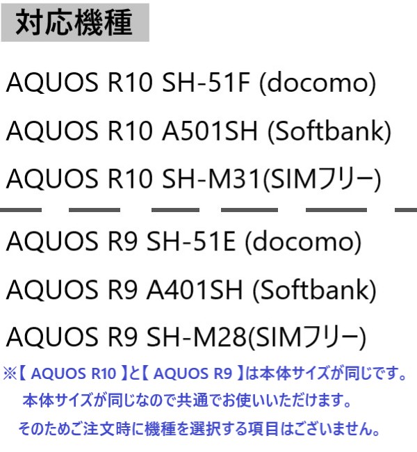 ※【 AQUOS R10 】と【 AQUOS R9 】はスマホ本体サイズが同じため、ご注文時に機種を選択する項目はありません。