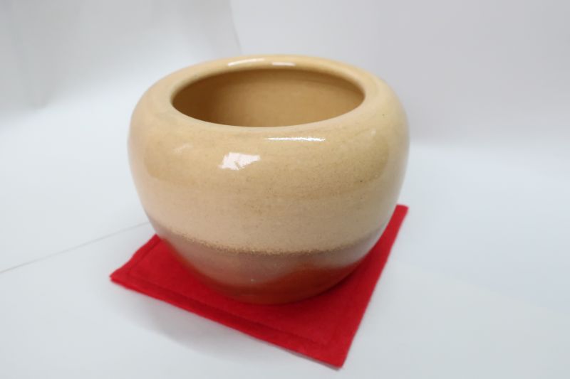 手火鉢 ベージュ×茶 高さ10cm 花瓶、小物入れ ※毛氈は付属品ではないです。
