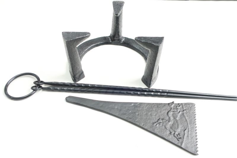 南部鉄 小型五徳14cm、火箸 灰ならし、3点セット