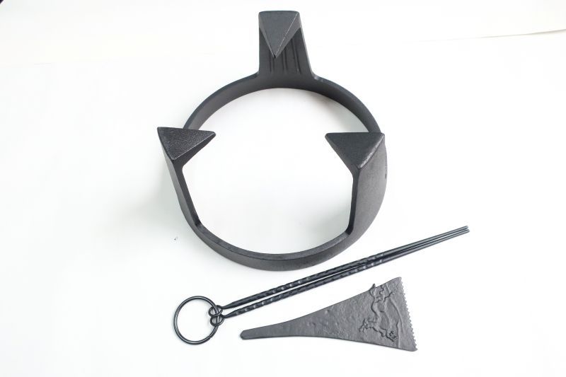 南部鉄最高級セット、五徳大、火箸、灰掻き。3点販売