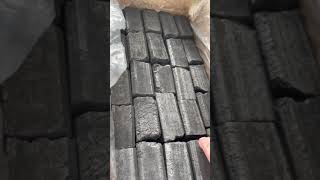 穴あき形状のオガ炭。オガくずを固めて炭にしたものです。