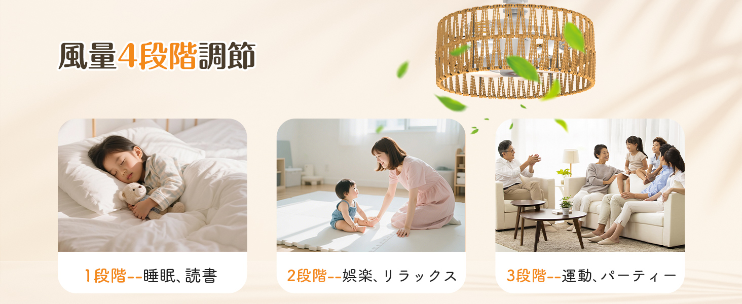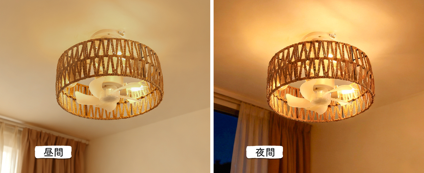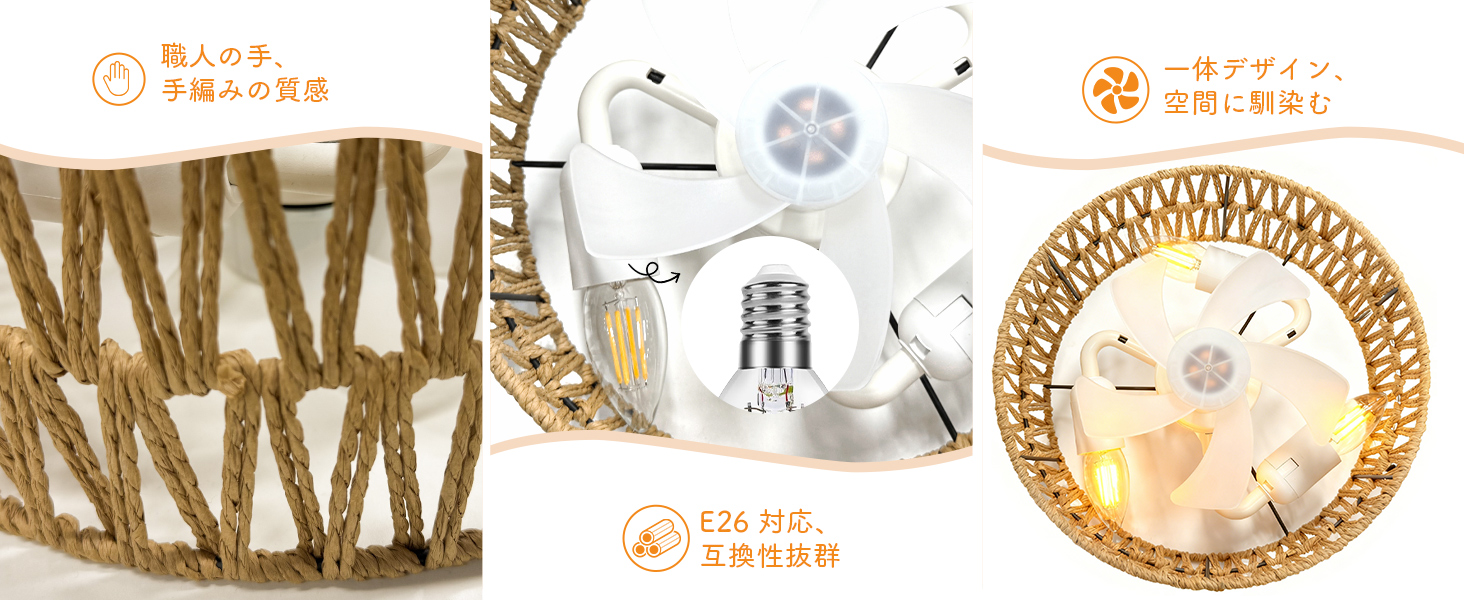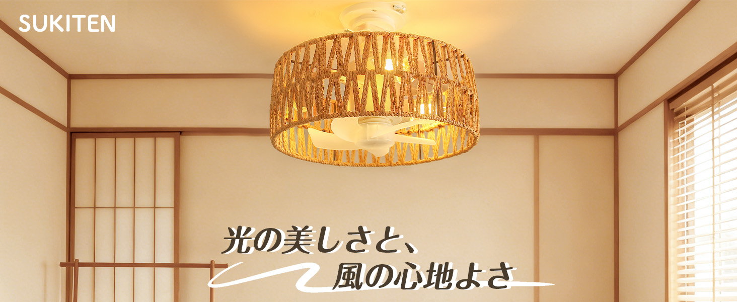シーリングファンライト【2026年新品.小型.和風.手編み】E26口金 DCモーター静音 暖色3灯日式 1500lm4段階風量 タイマー 省エネ 照明器具 3-4畳 LED