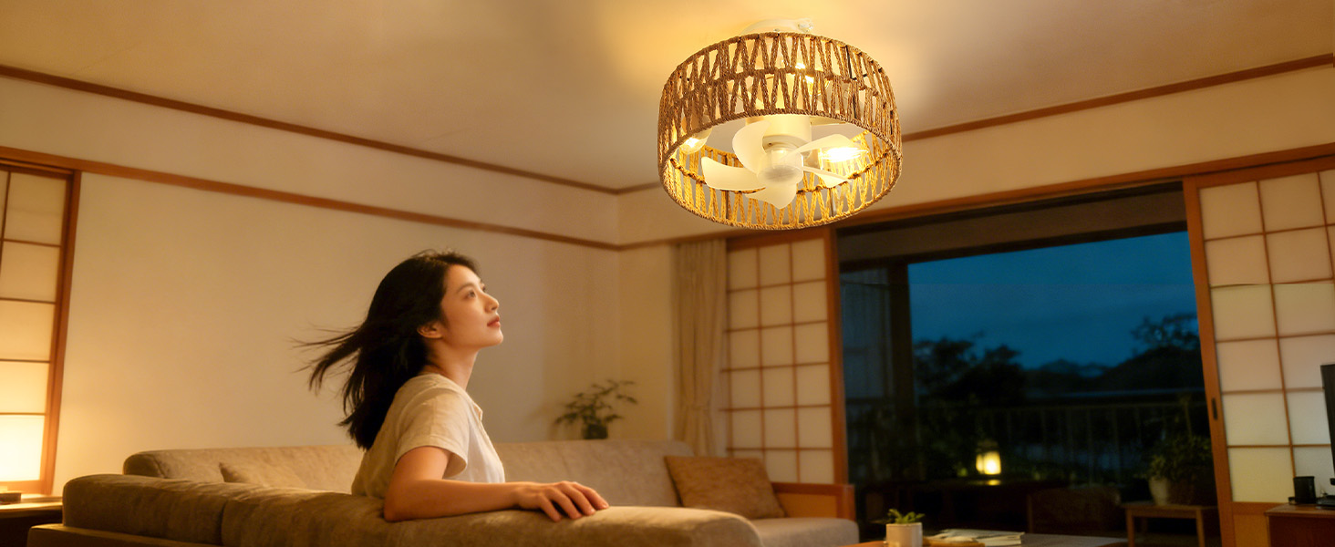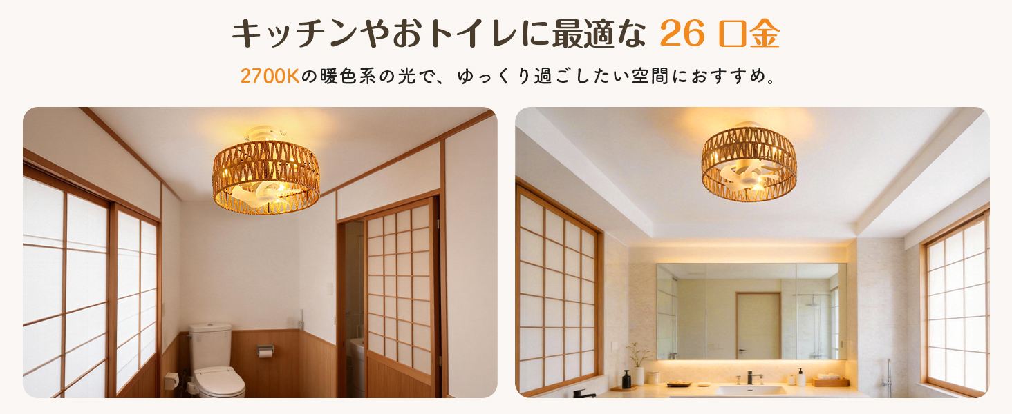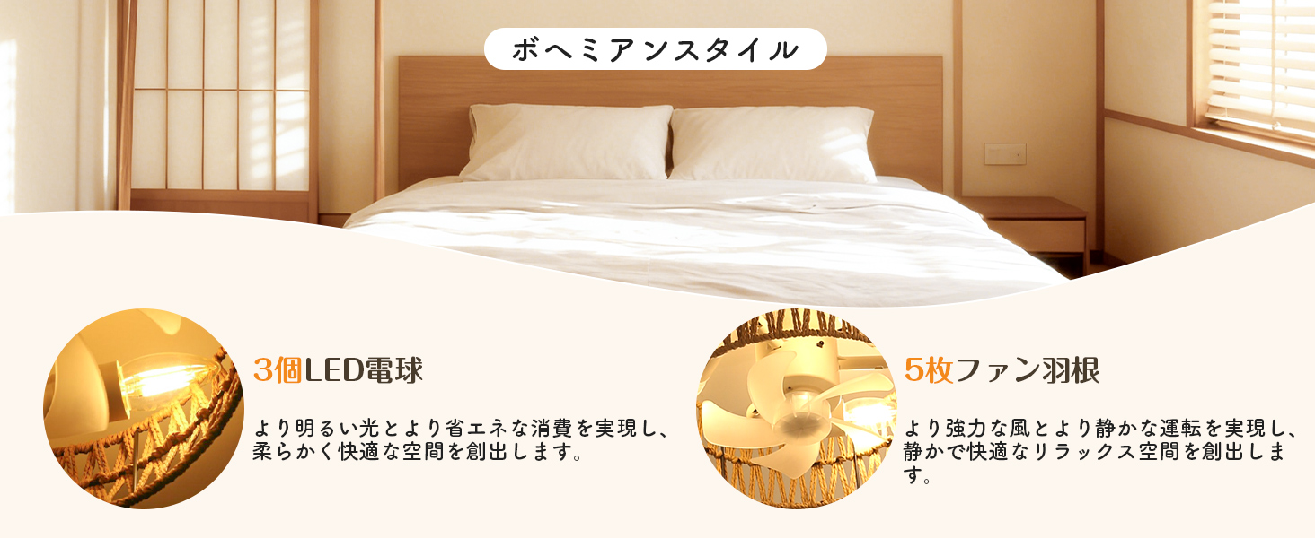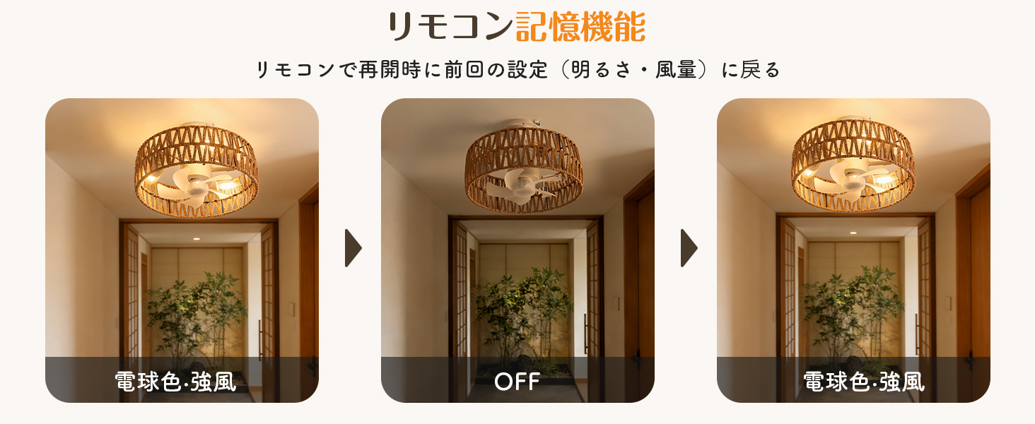 シーリングファンライト【2026年新品.小型.和風.手編み】E26口金 DCモーター静音 暖色3灯日式 1500lm4段階風量 タイマー 省エネ 照明器具 3-4畳 LED
