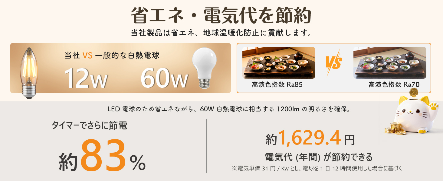 電球交換:類似サイズ可能、1球あたり6w以下(別途購入)