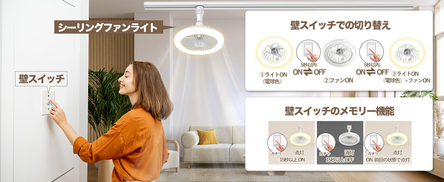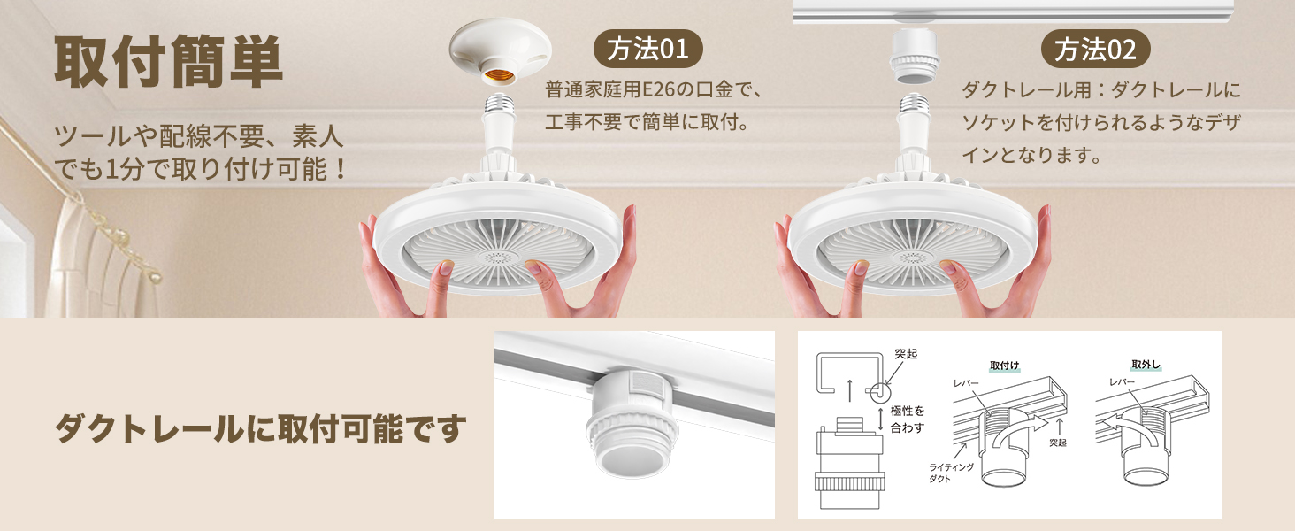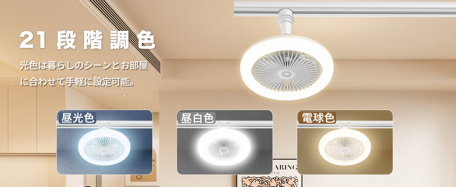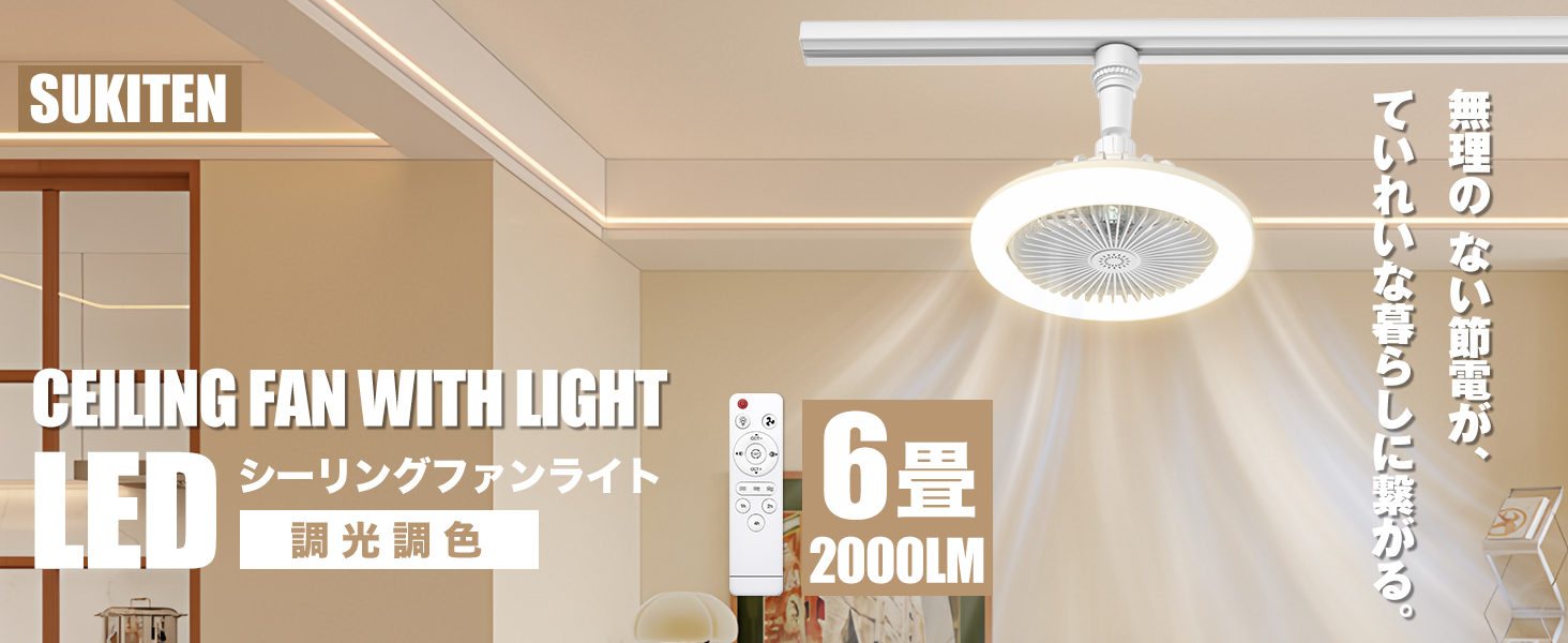 シーリングファンライト 小型 工事と穴開け不要 サーキュレーター30W LED天井ライト8畳 E26ソケット引掛/ダクトレール 扇風機 省エネ 調光調色 リモコン 2000lm