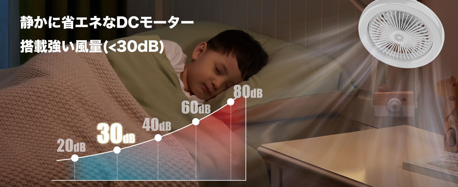 【静音設計で快適.省電力】DCモーターを採用。省エネ性が高く、風速設定がゆっくりとリズミカルで運転音も30%低く、より快適な環境を実現します。
