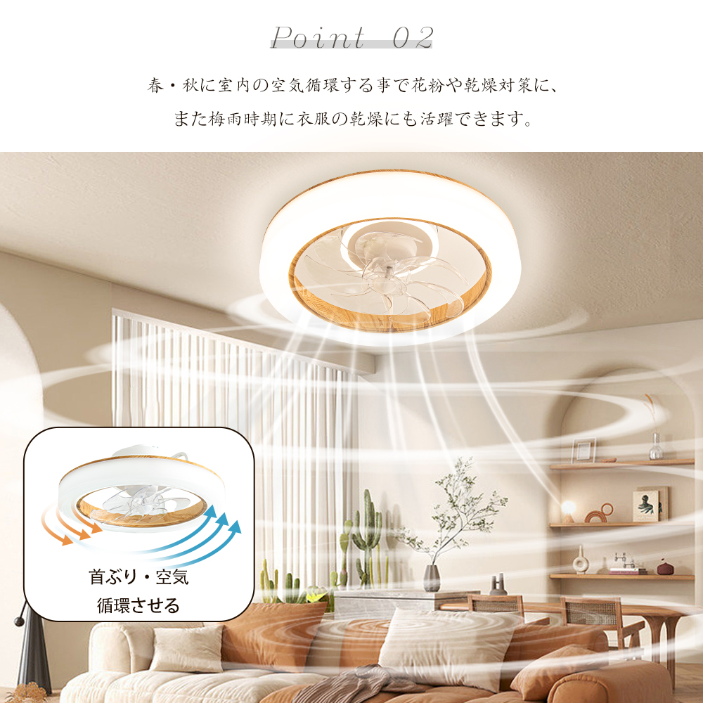 【3in1多機能.首振り&360°回転】「照明.送風.空気循環」の3機能を一体化。3500LMと120W相当の風量で広い空間を明るく照らしながら効率的な送風を実現。360°回転&首振りで従来比2倍の空気循環効率を達成。