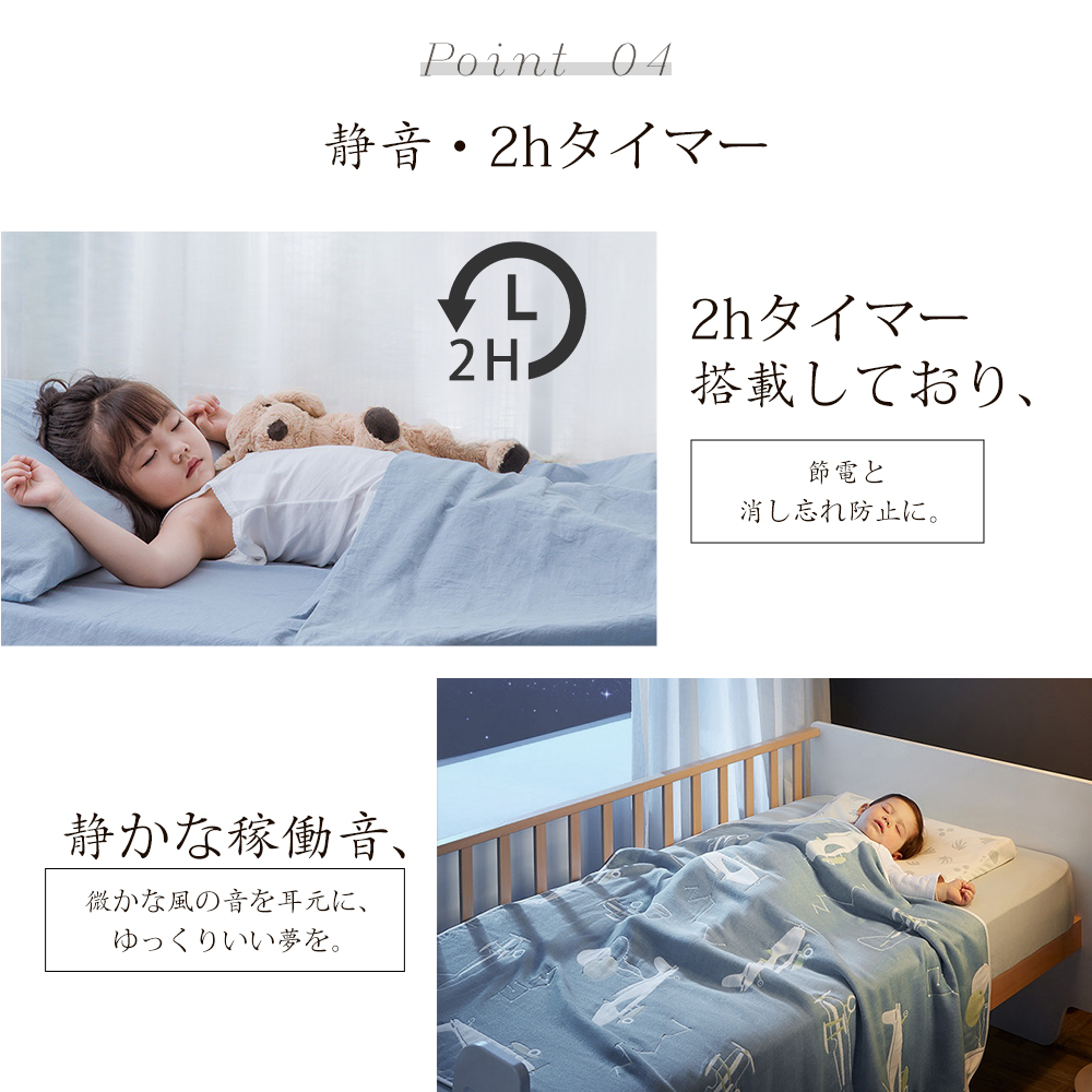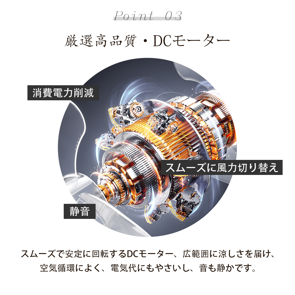【DCモーターで静音.省エネ】DCモーター採用で動作音を43%低減し、就寝時も静かな環境を提供。電気代の節約に貢献します。