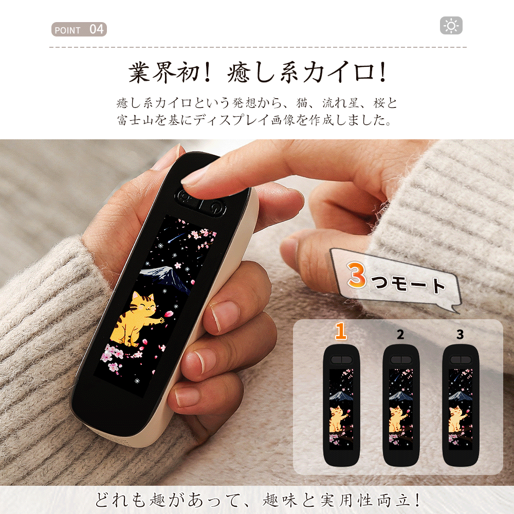 【猫ディスプレイ付き充電式カイロ】おしゃれなデザイン・高い実用性・優れたコスト性能。2in1マグネット分離式のこの充電式カイロは美しい和風デザインが光るLED星空ディスプレイが最大の魅力。
