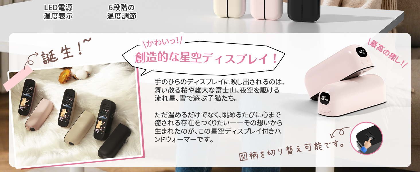 【猫ディスプレイ付き充電式カイロ】おしゃれなデザイン・高い実用性・優れたコスト性能。2in1マグネット分離式のこの充電式カイロは美しい和風デザインが光るLED星空ディスプレイが最大の魅力。