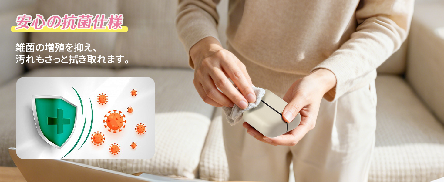 【肌触りが良い素材・抗菌設計】肌に優しいシリコーンオイル表面処理技術を採用し、なめらかで心地よい触り心地を実現!表面には抗菌素材を使用しているため、雑菌の繁殖を抑制し、指紋の付着も防ぎます。 お手入れも簡単で湿らせたティッシュで拭くだけで表面の汚れをすっきり除去。