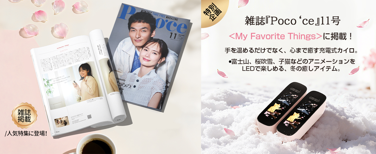 充電式カイロ【Poco'ce雜誌紹介.猫ディスプレイ】電気カイロ 10000mAh 6段階温度 3秒発熱 マグネット分離式 超軽量 急速充電 便利グッズ PSE 寒さ対策 ギフト2個