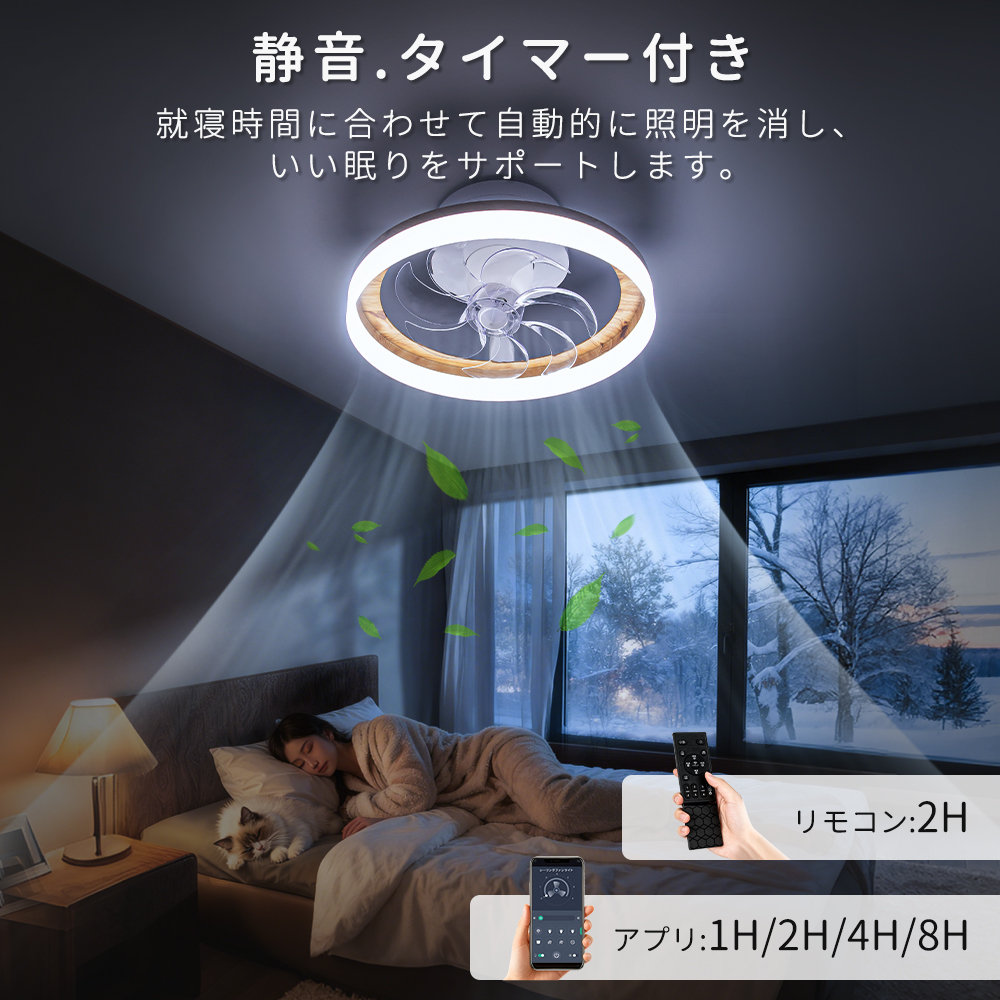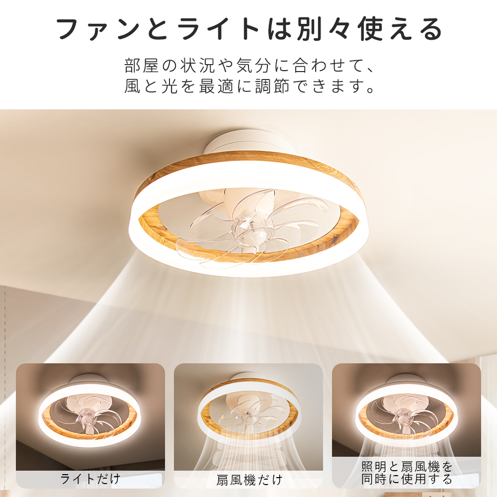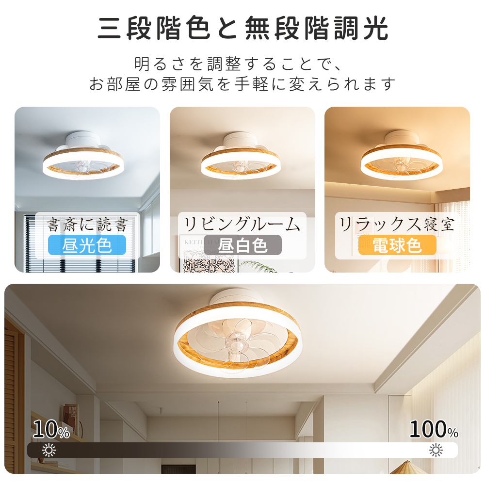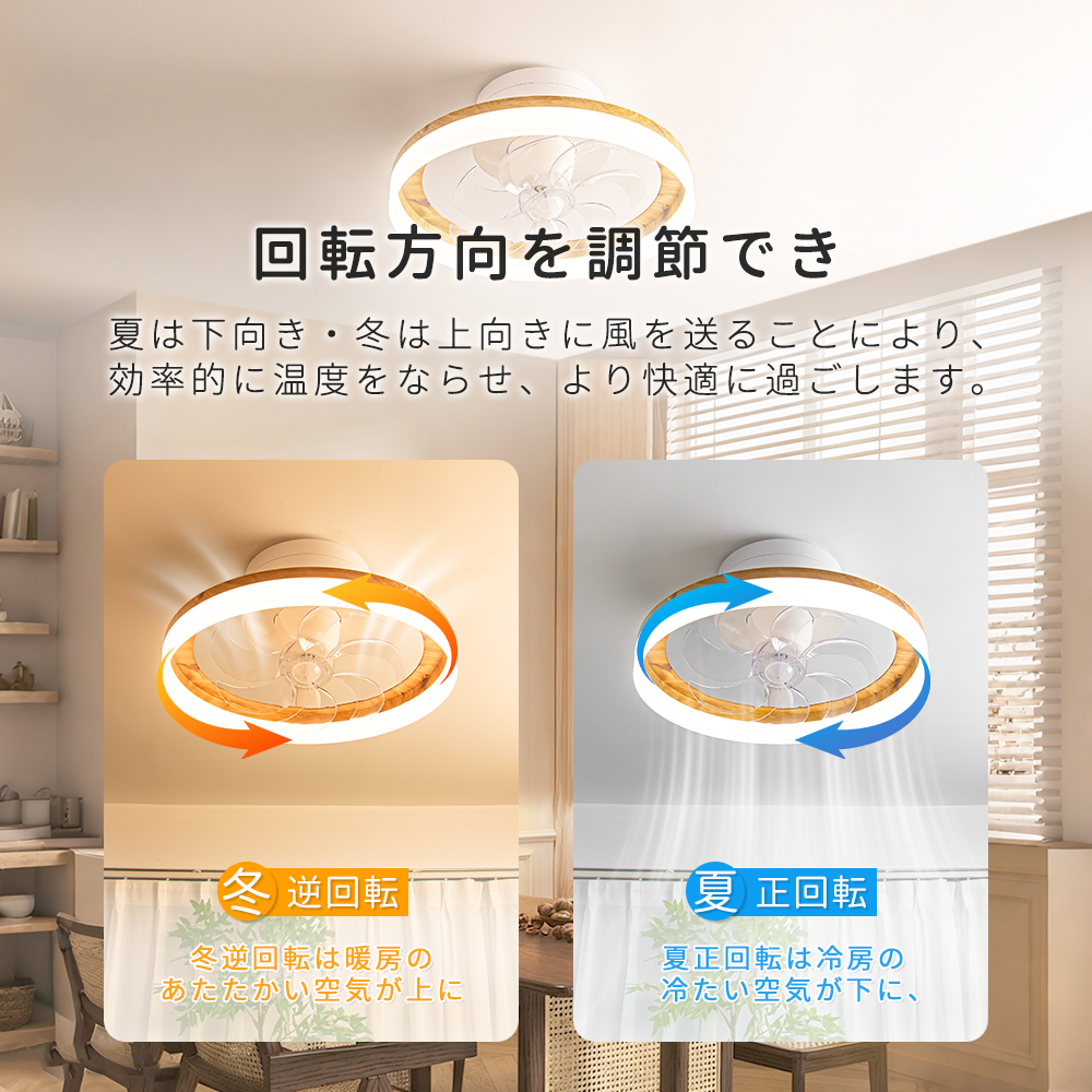 「正逆回転」夏は冷気を効率よく循環させ、冬は暖気を部屋全体に行き渡らせます。6段階調整で就寝時の微風から換気時の強風までシーンに合わせた風を自在にコントロールできます。【目に優しい】無点滅な安定照明によって明るさ10%の常夜灯モードでも均一で柔らかな光を実現、長時間の読書やパソコン作業でも快適です。