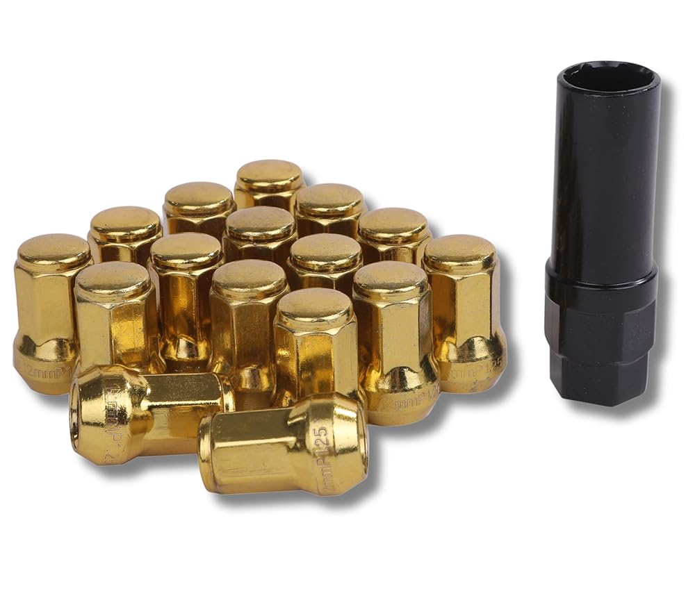 ロック ナット ゴールド 車用 タイヤホイールナット M12 ショートナット ラグナット レーシングナット 16個 1.25mm