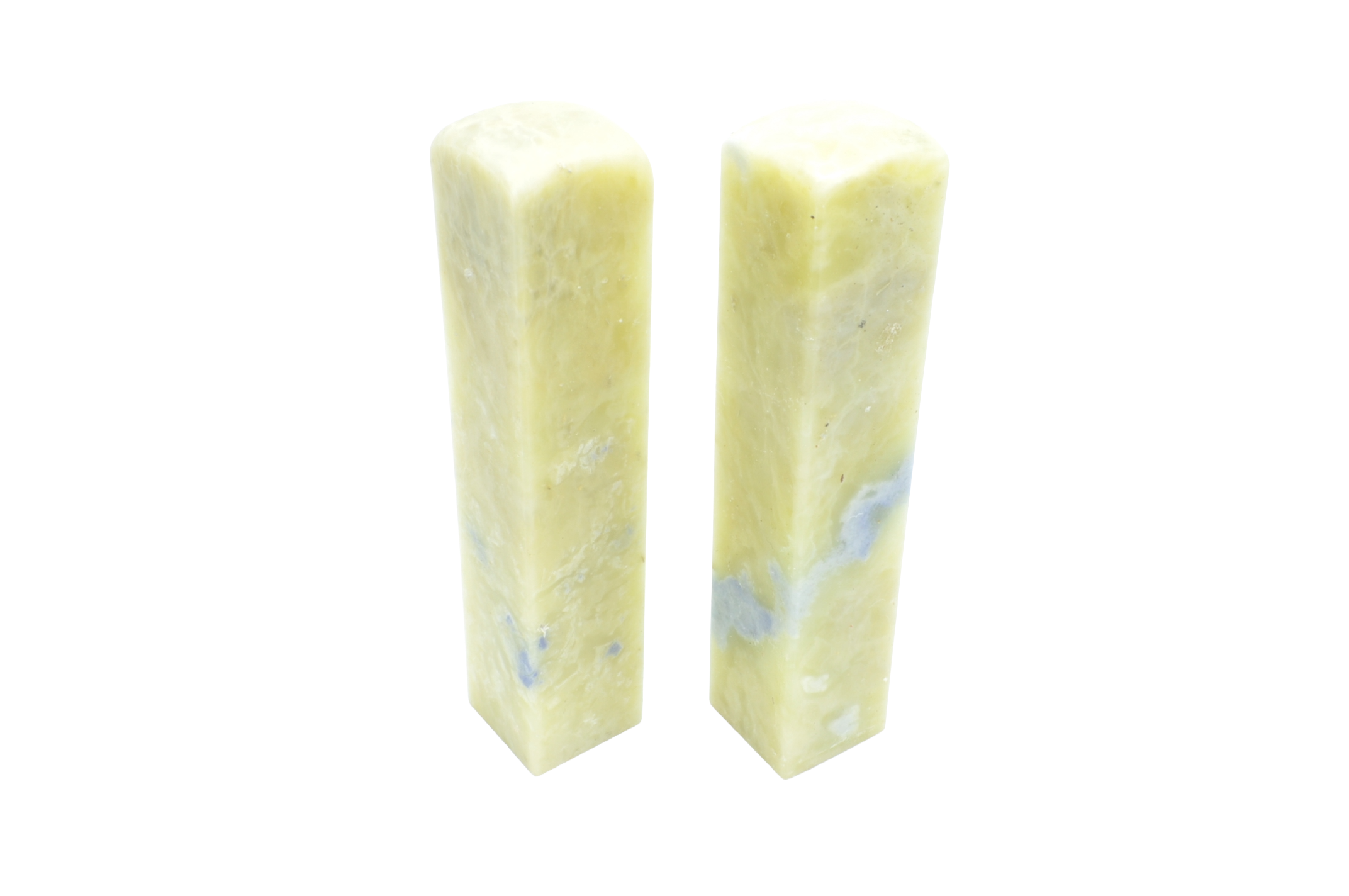 青田石は篆刻印材の中で最もバランスの良いとされる印材です。カケ味/彫り味/色彩/高度/結晶粒度などバランスが良いとされていますが、近年の青田石は、昔の青田石に比べやや高度が高くなっているため、初心者にはやや硬く感じるかもしれません。ですがやはりバランスの良さには定評があります。印材に迷ったら青田石を選びましょう。