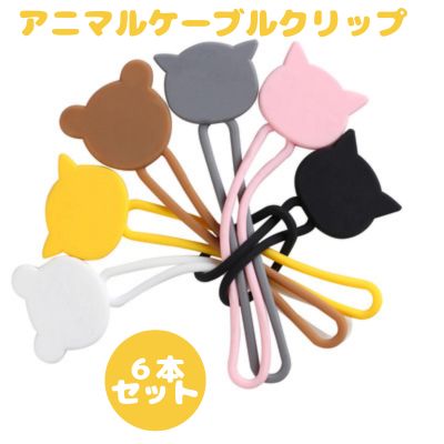 アニマルケーブルクリップ 6本セット おしゃれ コードクリップ まとめる イヤホンコード