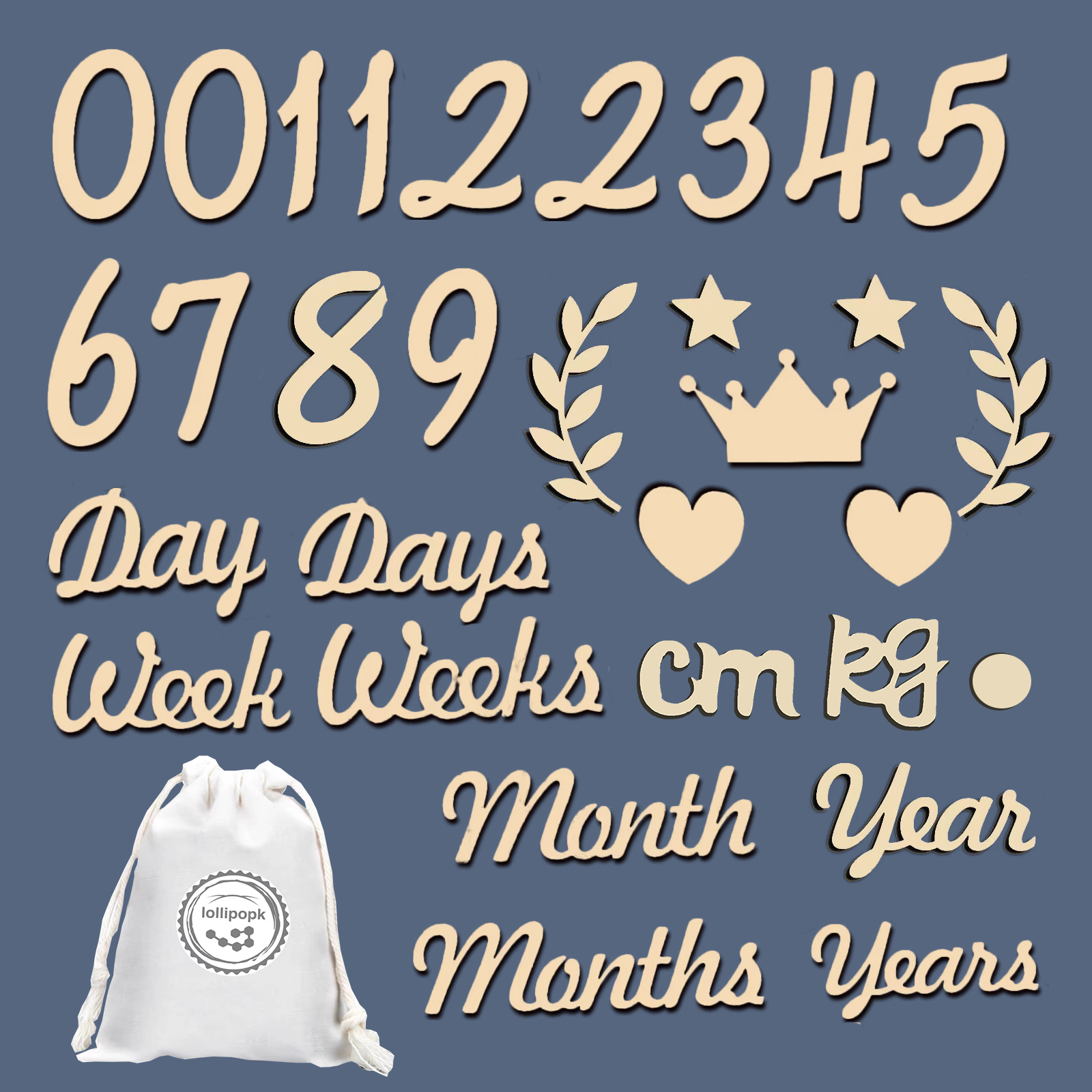 【セット内容】合計31枚、0-9の数字カード(0*2個、1*2個、2*2個)、また「day(s)、week(s)、month(s)、cm、kg、「・」、飾りの葉*2個、星*2個、ハート*2個、王冠」など、ママ達の間で流行し、インスタなどで大人気のベビーフォトアイテム。