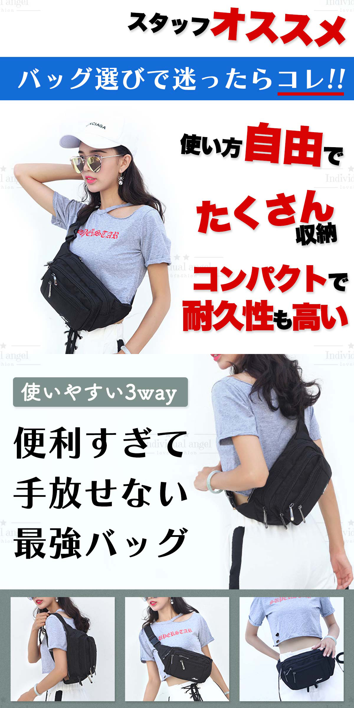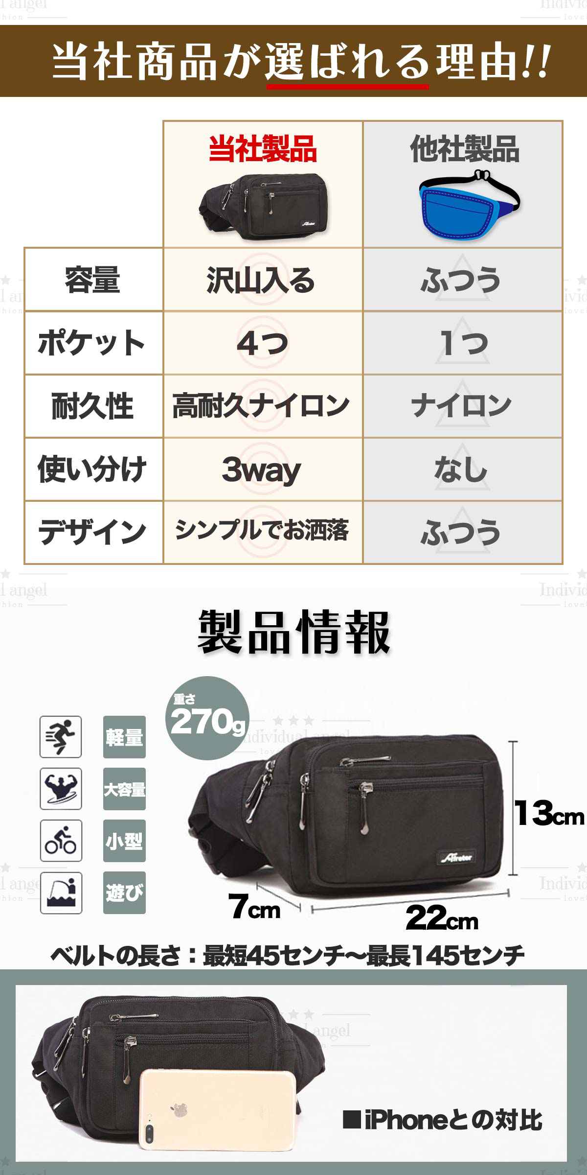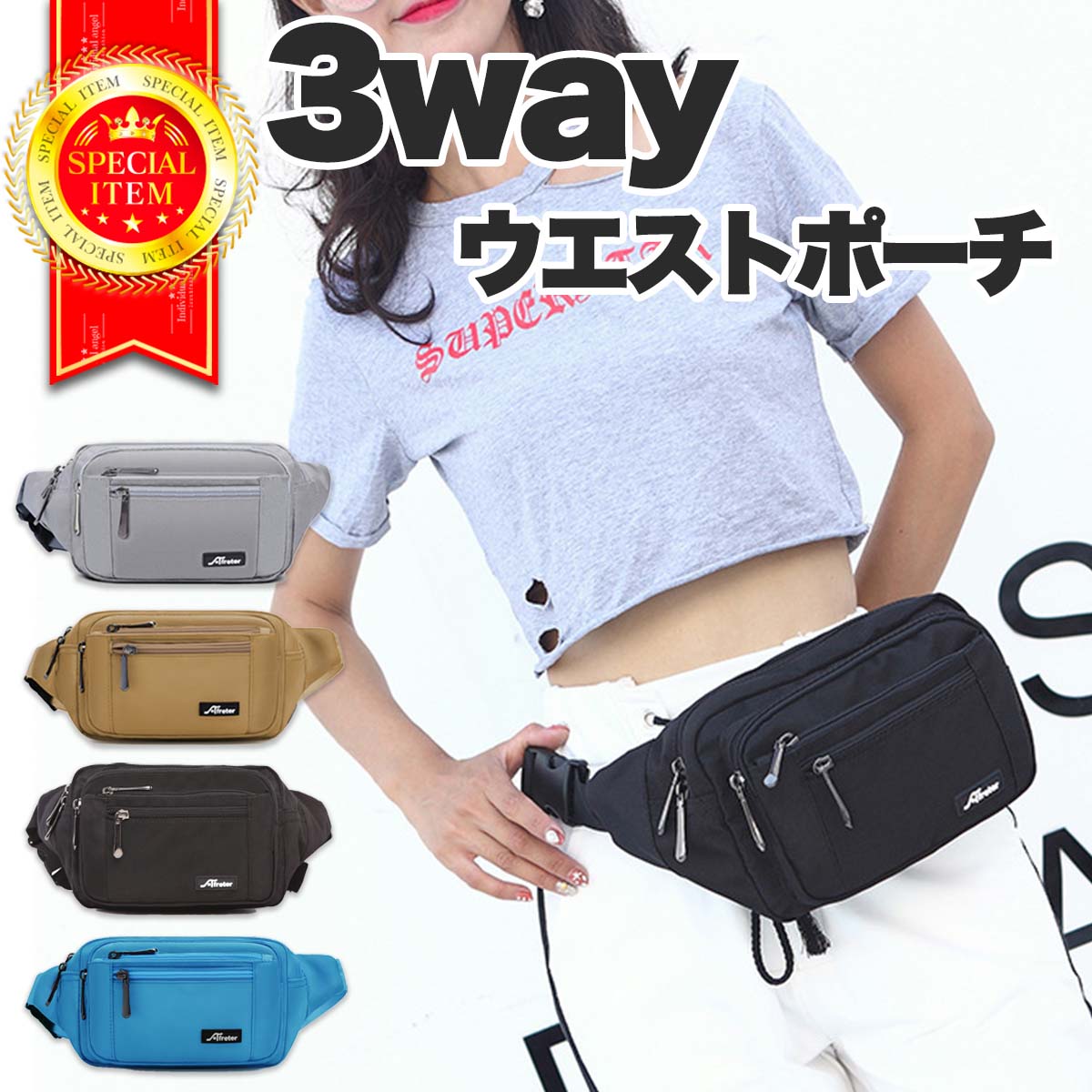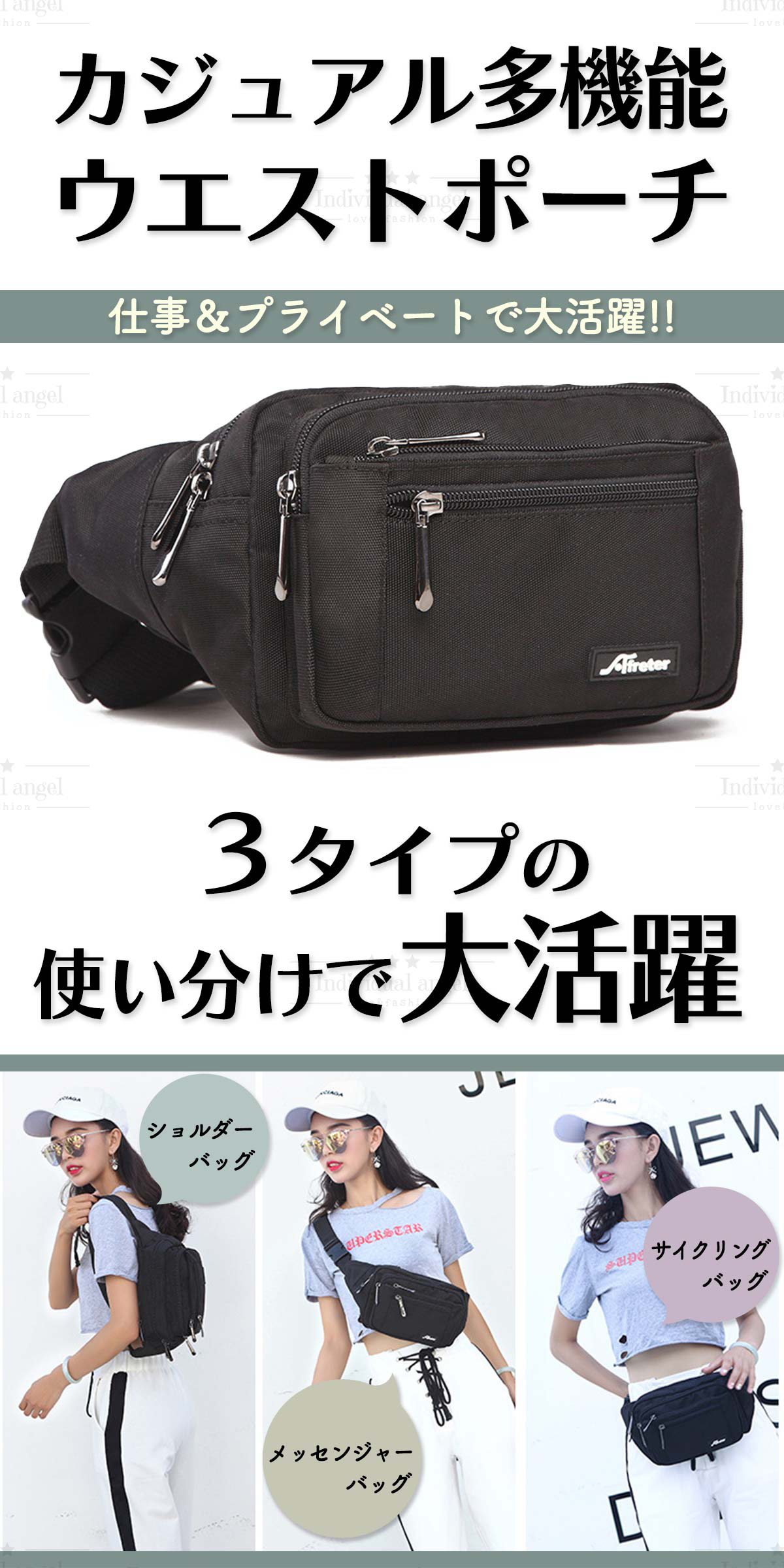 ウエストポーチとしてもショルダーバッグとしてもボディバッグとしてもお使いいただけます。