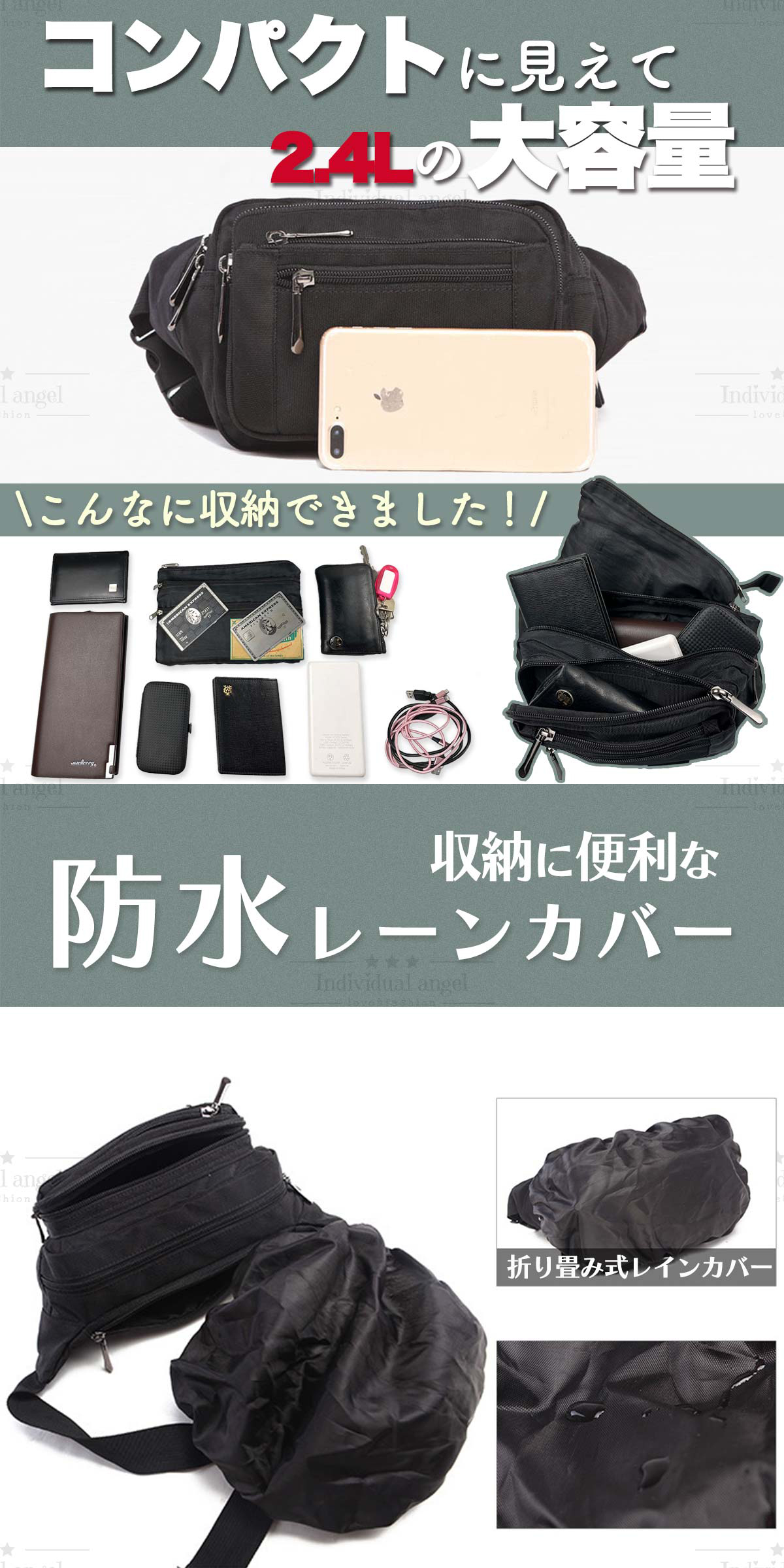 たくさん収納&丈夫なウエストポーチですので、仕事用としてもお使いいただけます。