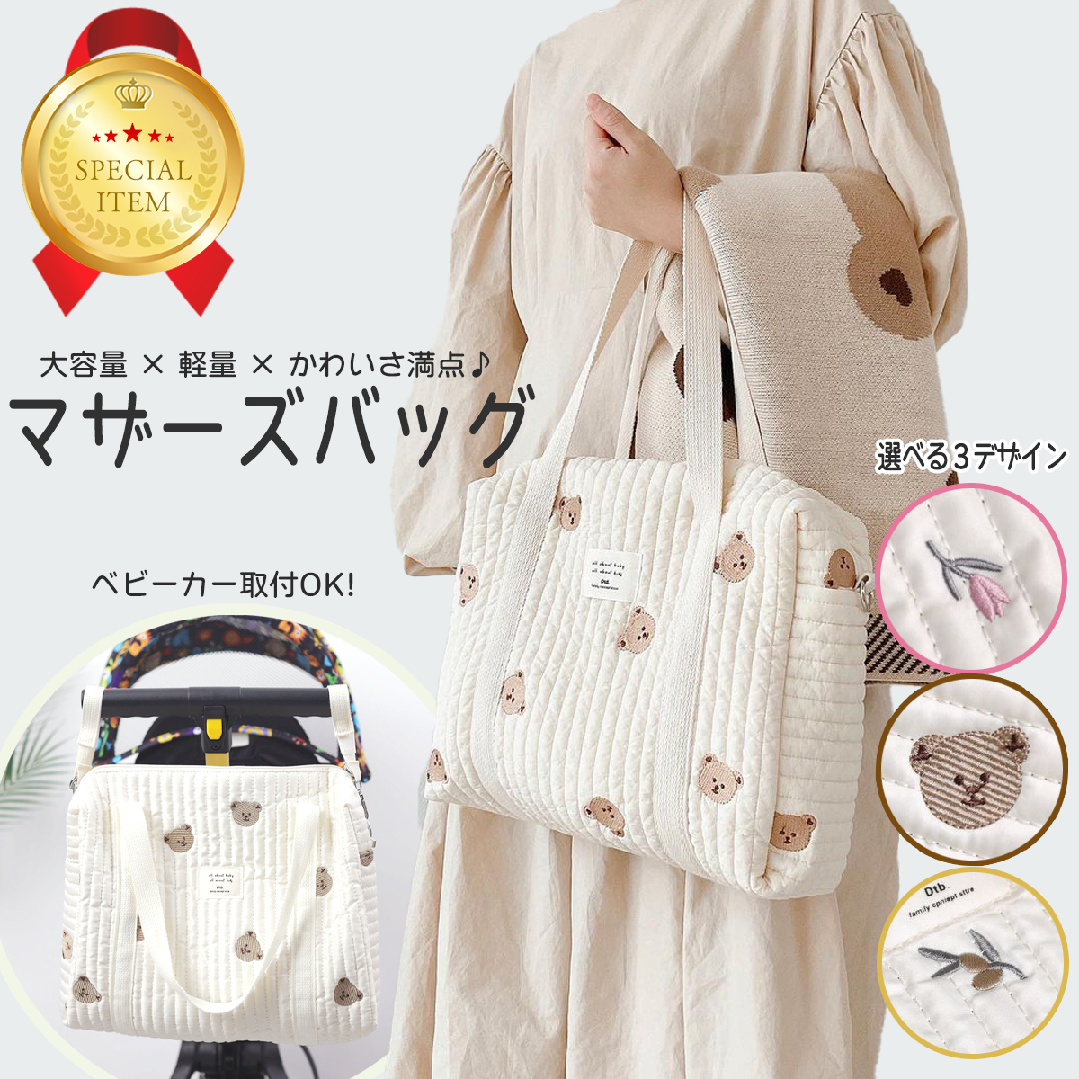 マザーズバッグ かわいい シンプル おしゃれ トート キルティング バッグ ヌビバッグ 韓国 大容量 軽い 自立 キルティングバッグ ヌビ 刺繍 A4 ママ 送料無料