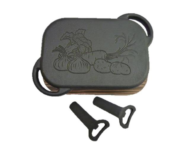 北海道、沖縄除き送料無料 南部鉄器 ベイクパン 木台・ハンドル2ヶ付き IH・オーブントースター対応