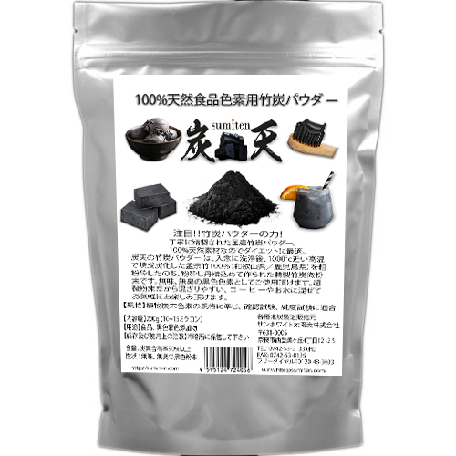 ハリウッドスターにも注目され、海外のオーガニックのお店や健康食品店でも取り扱われている食用の炭。炭天の竹炭パウダーは、入念に洗浄後、1000℃近い高温で焼成炭化した孟宗竹100%(和歌山県/鹿児島県)を粗粉砕したのち、