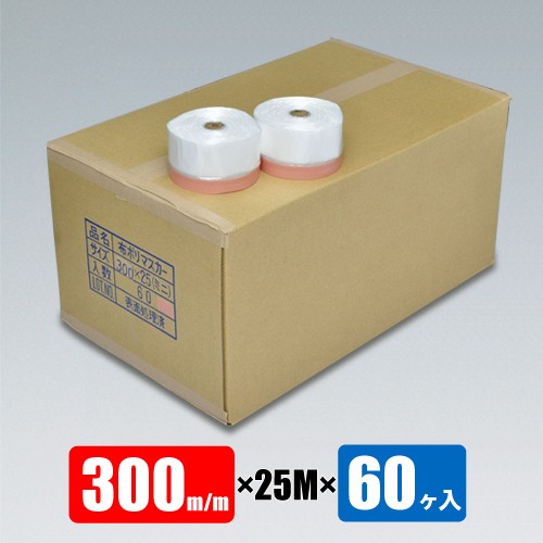 布テープ付マスカー 300mm巾 25M巻×60ヶ入 1箱 1ケース コロナ処理品