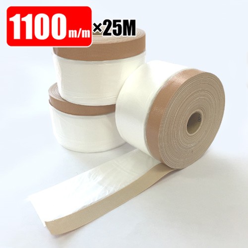 布テープ付マスカー 1100mm巾 25M巻 バラ コロナ処理品