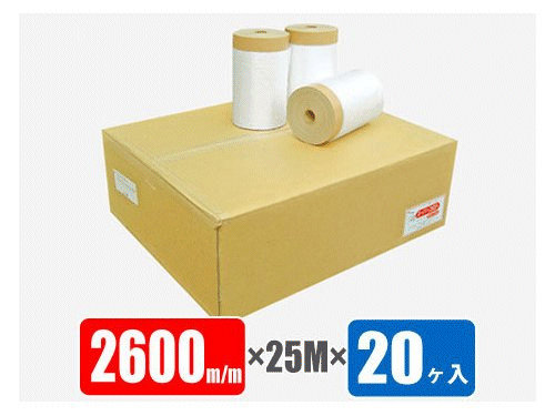 布テープ付マスカー 2600mm巾 25M巻×20ヶ入 コロナ処理品