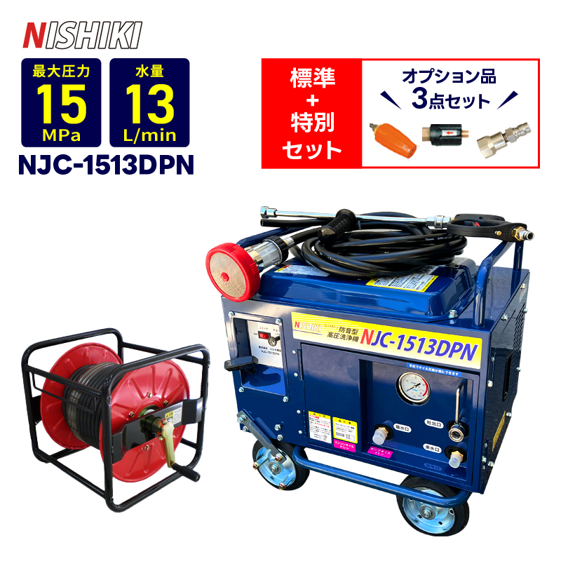 ◆年末年始・大特価◆★在庫あり★ エンジン式高圧洗浄機 防音型 【NJC-1513DPN】標準+特別セット(オプション品3点付) NISHIKI(精和産業製)業務用