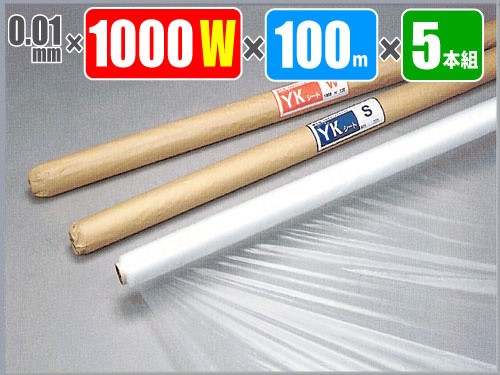養生シート YKシート コロナ処理 0.01mm×1000W×100M巻 5本組