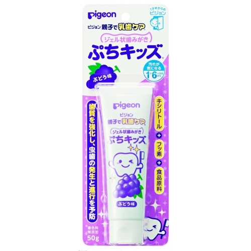 | 使用方法 適量を歯ブラシにとり、歯および歯ぐきをブラッシングしてください。お口すすぎが上手にできないお子さまには、ブラッシング後、ガーゼなどでぬぐい取ってあげてください。 使用上の注意 ・傷・発疹等、異常のある部位にはお使いにならないでください。・使用中、発疹・かゆみなどの異常があらわれた場合は、使用を中止し、医師にご相談ください。・目に入ったときは、こすらずすぐに水で十分洗い流してください。・乳幼児の手の届かないところに保管してください。・お子様がご使用になる場合は、必ず保護者の方の監視のもとで使用させてください。・使用後は必ずキャップを閉めてください。 成分 基剤:精製水湿潤剤:キシリトール、PG清掃剤:無水ケイ酸粘結剤:カルボキシメチルセルロースNa薬用成分:フッ化ナトリウム保存料:安息香酸Na、エチルパラベン香味剤:香料(ぶどうタイプ) お問い合わせ先 ピジョン株式会社 お客様相談室 0120-741-887(受付時間 9時〜17時 土・日・祝日を除く) 原産国 日本 商品区分 医薬部外品 |